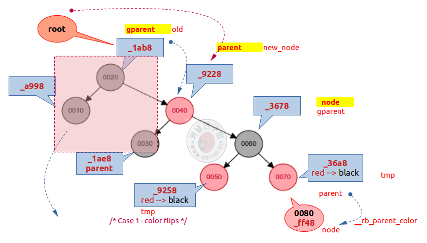 unsigned long __rb_parent_color; //*parent | 1bit(1:B, 0:R)