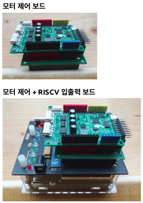 가성비 좋은 최신 64비트 CPU인 RISC-V 입출력 보드에 모터 제어보드를 적층하여 확장.