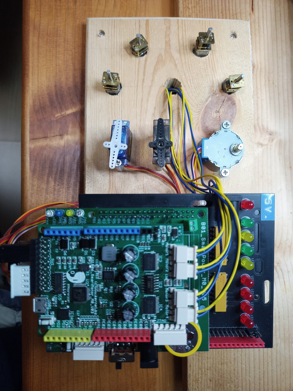 리눅스 커널 드라이버 모듈에서 간단한 명령으로 DC모터4개 서보모터2개 스테핑모터1개를 한꺼번에 동작.